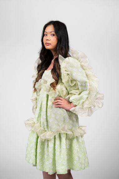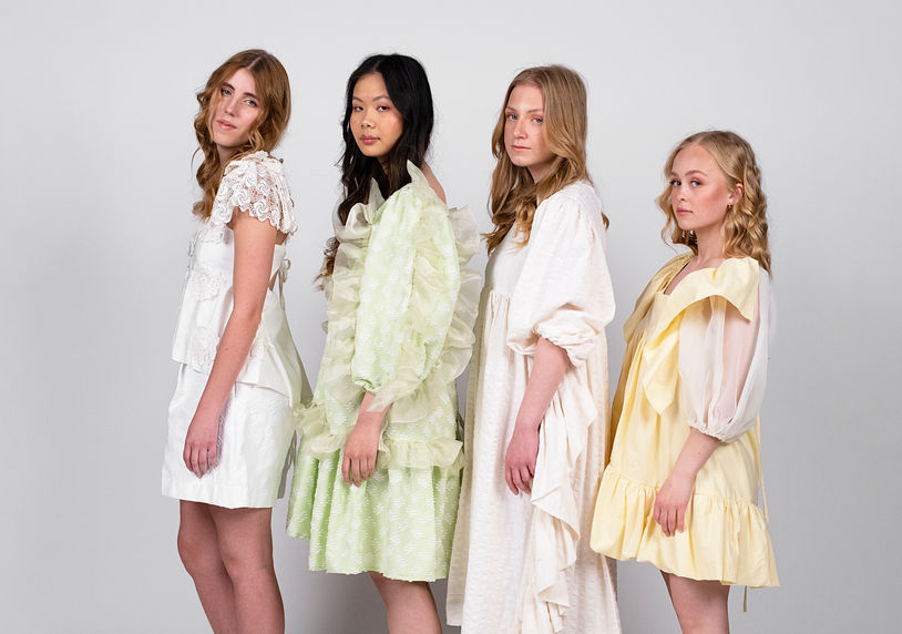Min kollektion är inspirerad av ritualer och traditioner kopplade till svensk midsommar. För mig representerar midsommar frihet. I min kollektion vill jag förmedla att man lämnar vardagen bakom sig, att man släpper måsten och tyngder som man bär på sina axlar. I dagens samhälle lever vi med höga krav och svåra beslut och ibland behöver man ta en paus – få ett break. I mina fem plagg har jag använt mig av lösa och lätta tyger i form av gamla lakan och dukar för att förmedla frihet och kravlöshet.