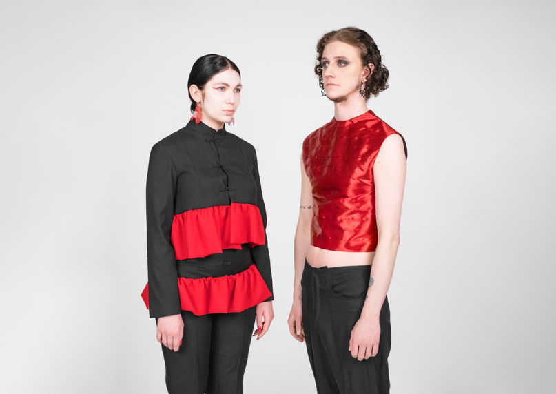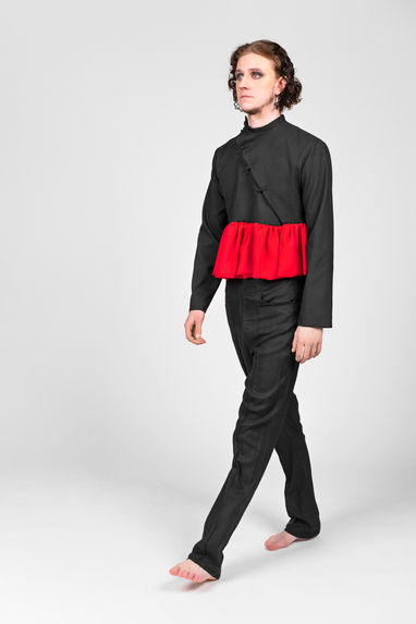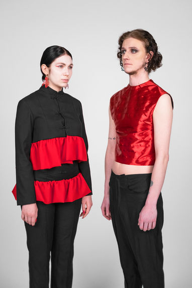 My collection is a tribute to the Asian traditional dress cheongsam. I grew up partially in Vietnam and fell in love with the culture. I wanted to weave a traditional and modern feel together. I also wanted to play with the idea of androgyny with my male outfit. As the world is ever-changing and androgyny becomes prevalent in our society it allows the clothes to breathe a sense of rebellion towards these traditions that at times are extremely conservative. This can allow a ritual to live on even in modern times.