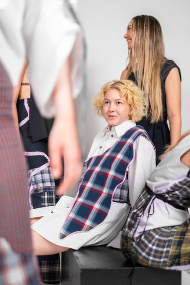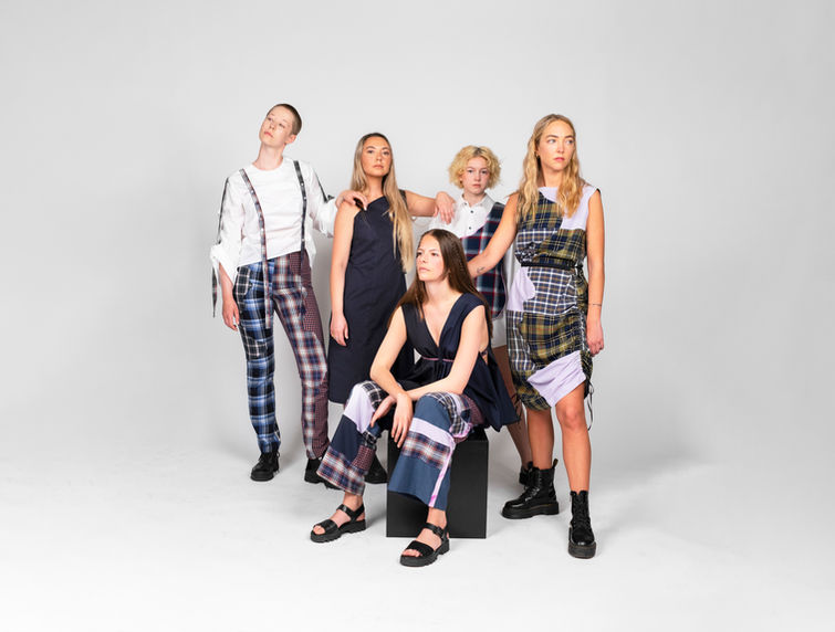 Inspirationen bakom kollektionen grundar sig i motsättningen att ha sin egen identitet och samtidigt vara en del av en grupp och dess identitet. Hur man kan sticka ut utan att sticka ut. Syftet med kollektionen är att ta tillvara på begagnade textilier som inte längre används för att minska miljöpåverkan. Jag har framför allt använt mig av gamla rutiga skjortor och försökt hitta ett nytt spännande uttryck och på så sätt förnya värdet i textilierna.