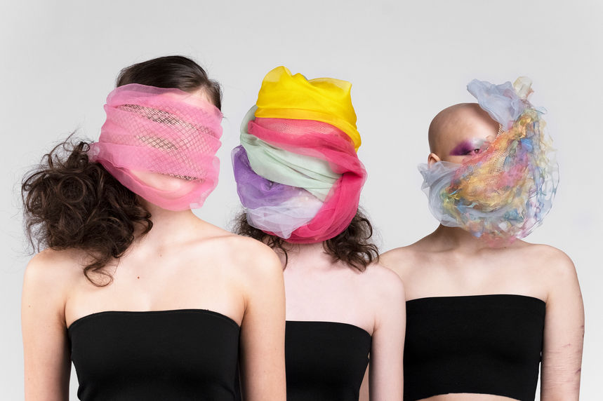Den rosa huvudbonaden med mörkgrönt nät är inspirerad av ens maskerade själv.