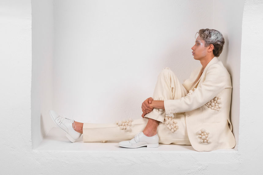Inspirationen till kollektionen är bl.a. is och fåglar men även min egen sexualitet och hur jag ser på partnerskap. En relation bör var vara jämställd och båda parter i relationen bör ha samma eller i alla fall liknande grundvärderingar, men man får inte vara för lika. Jag tror att man måste vara tillräckligt olika för att kunna lära av varandra, utvecklas och sedan växa tillsammans.