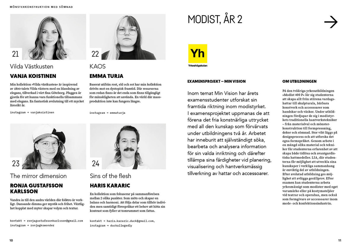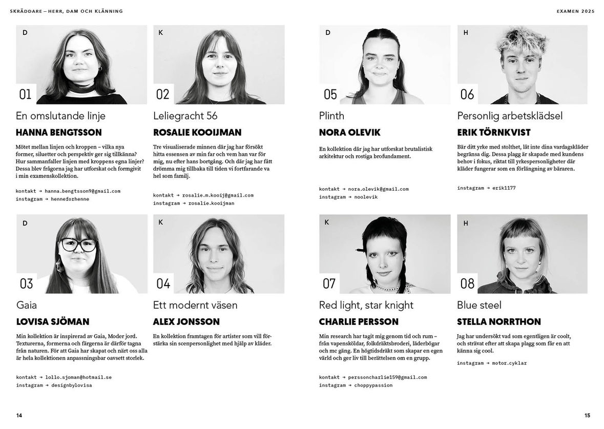 Precis som 2024 kommer catwalken vara i vår granne Forums härliga lokaler. Under visningen ser du ett tvärsnitt av skolans många discipliner: Mönsterkonstruktion och sömnad, Skrädderi – Herr- Dam och Klänning, Modist och Scenkostym och Historiska dräkter. En kavalkad av galaklänningar, vardagsplagg, avantgardistiska huvudbonader, klassisk skräddarkonst, historiska herr- och damdräkter, korsetter och kjolstommar.